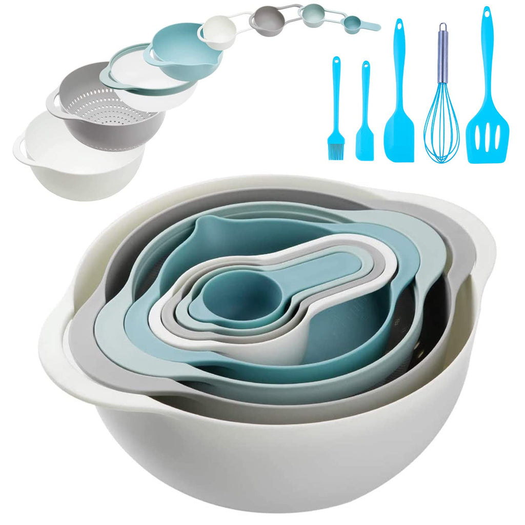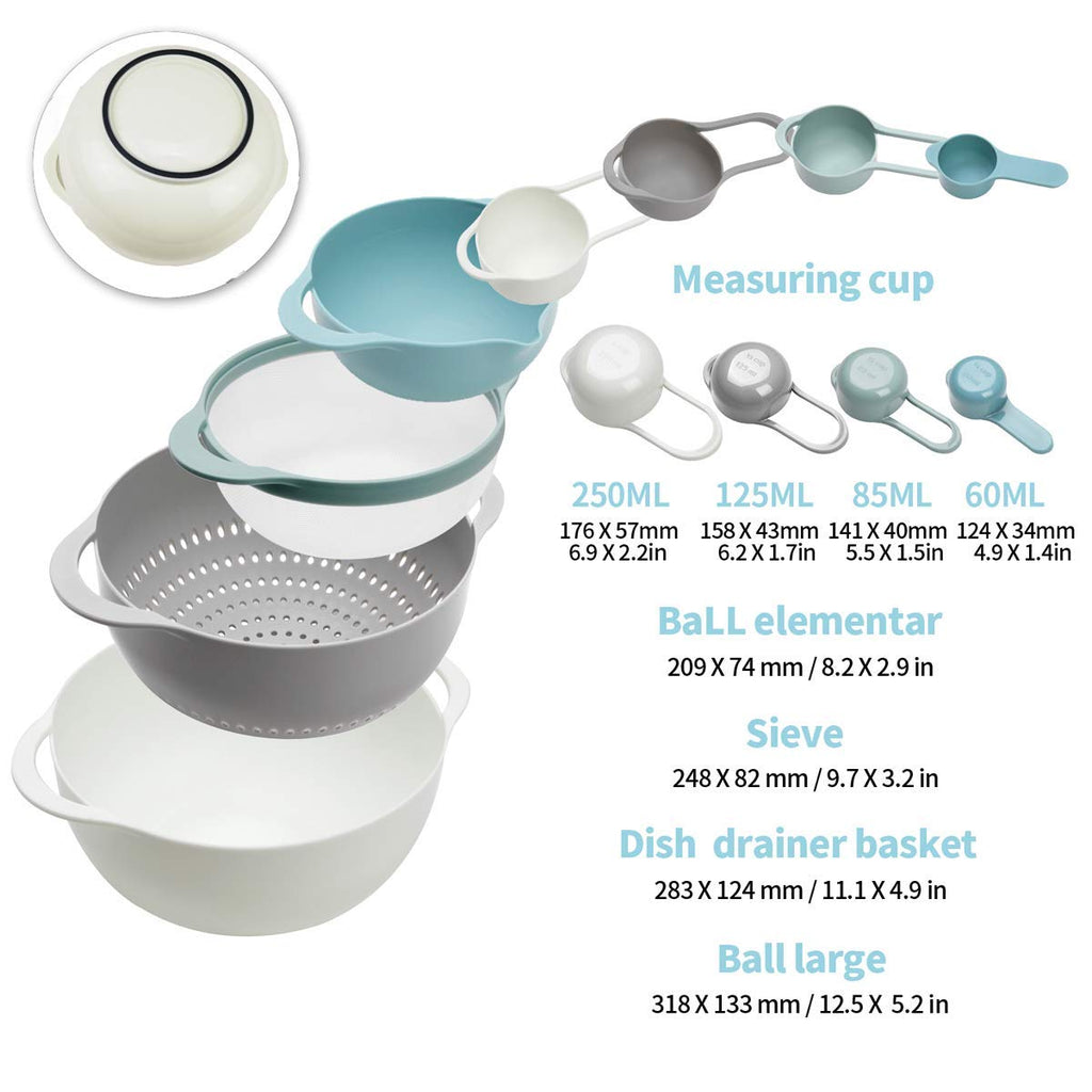 Plastic Nesting Mixing Bowl Set of 8, Colorful Gadgets for Apartments Kitchen, Including Measuring Cups Sifter Colander, Easy Storage Cooking Baking, Great Rv Camper Accessories, No BPA