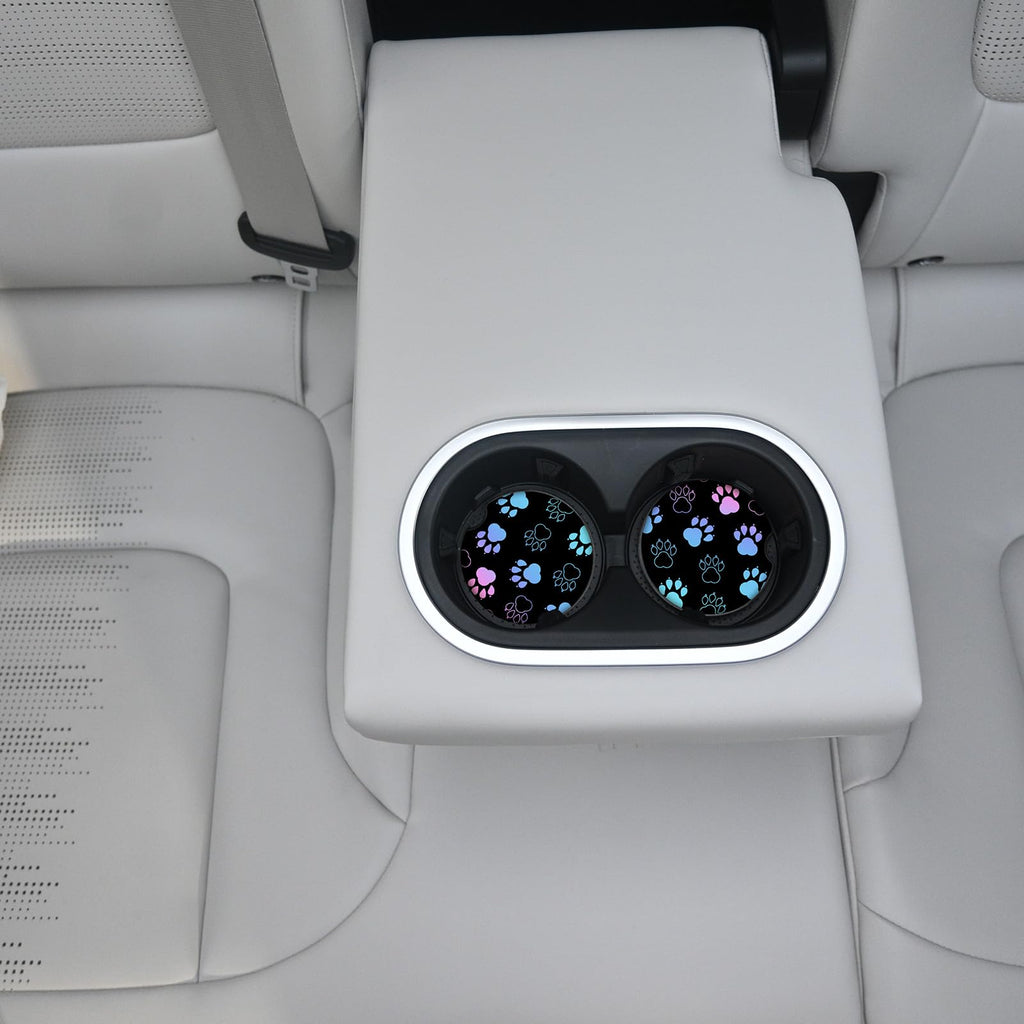 Absorbent Car Coasters for Cup Holders, 2 Pack Universal Neoprene Car Coasters with Finger Slot, Auto Accessories for Women & Me