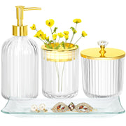 Haturi Bathroom Accessories Set, 4Pcs Glass Bathroom Accessories Sets Complete w/Lotion Soap Dispenser, Toothbrush Holder, Apothecary Jar, Vanity Tray, Bathroom Decor, Gift for Home Apartment