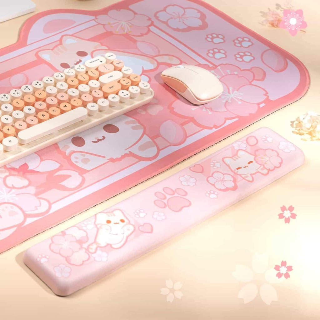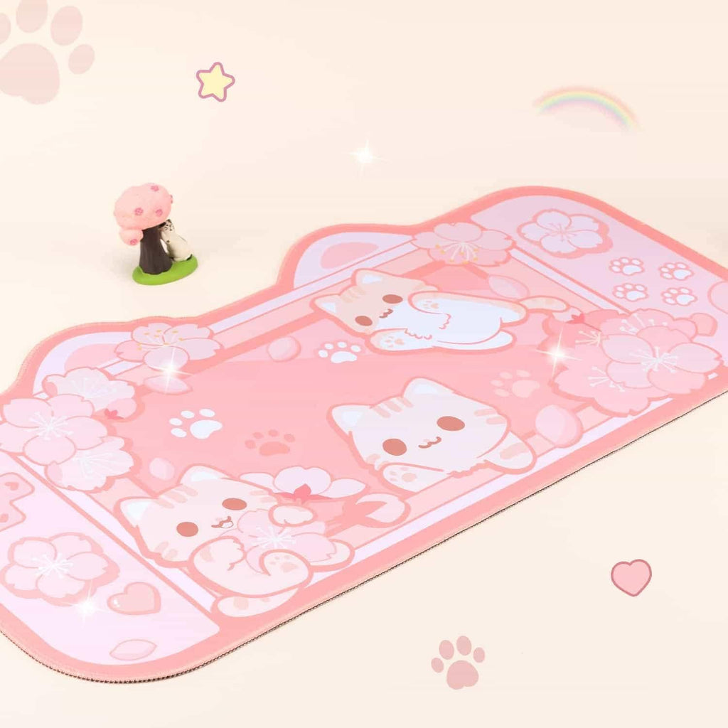 BelugaDesign Sakura Cat Desk Pad | NS Switch Keyboard Laptop Gaming Setup Accessories Mat Large Mat Mousepad | Pastel Pink Bunny