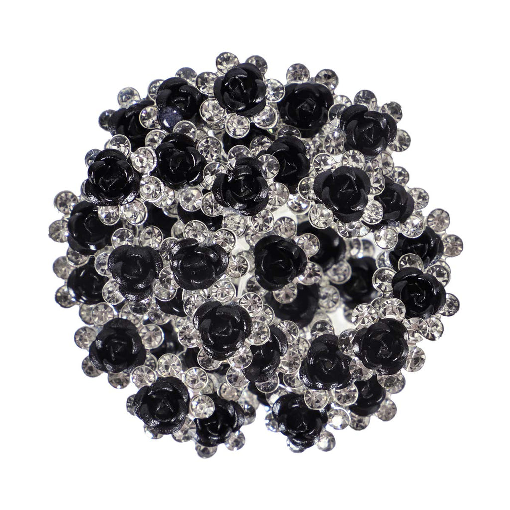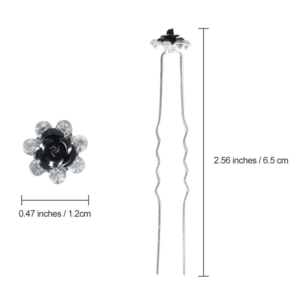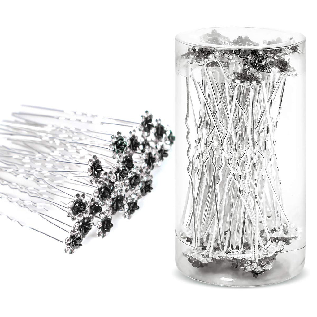 BETITETO 40 Pcs U-Shaped Flower Rhinestone Hair Pins Crystal Hair Accessories for Bridal Wedding Party Girls' Sweet Sixteen (Bla