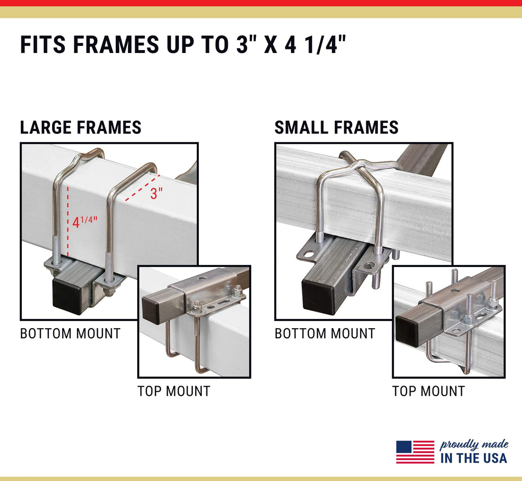 This guide-on adjusts out to 19 inches on each side and fits frames up to 3 inches wide by 4-1/4 inches high.