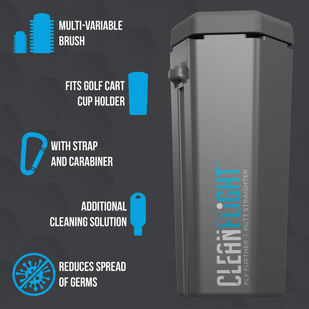 strong>cREATED BY gOLFERS FOR gOLFERSstrong> strong>ABOUT cLEAN FLIgHT strong> clean Flight golf is a Professional golf Accessories development company With golf ball washers having been removed we knew that there was a serious need to be filled For months, we worked tirelessly alongside a group of professional designers, engineers, and consultants to produce a product that we believe will revolutionize how golfers keep their golf balls performing at peak potential   Introducing cLEAN FLIgHT by clean Flight golf conveniently with you throughout your game, cLEAN FLIgHT is the latest in golf technology that attaches easily to any golf bag, or golf cart cup holder   strong>FEATURES: strong> rofessionally Made atent Pending cleans Quickly And Seamlessly Attaches Seamlessly To golf Bagcart urable Flight Strap cLEAN FLIgHT Personal golf Ball Washer Instructions light Strap With carabiner 30ml cLEAN FLIgHT cleaning Solution