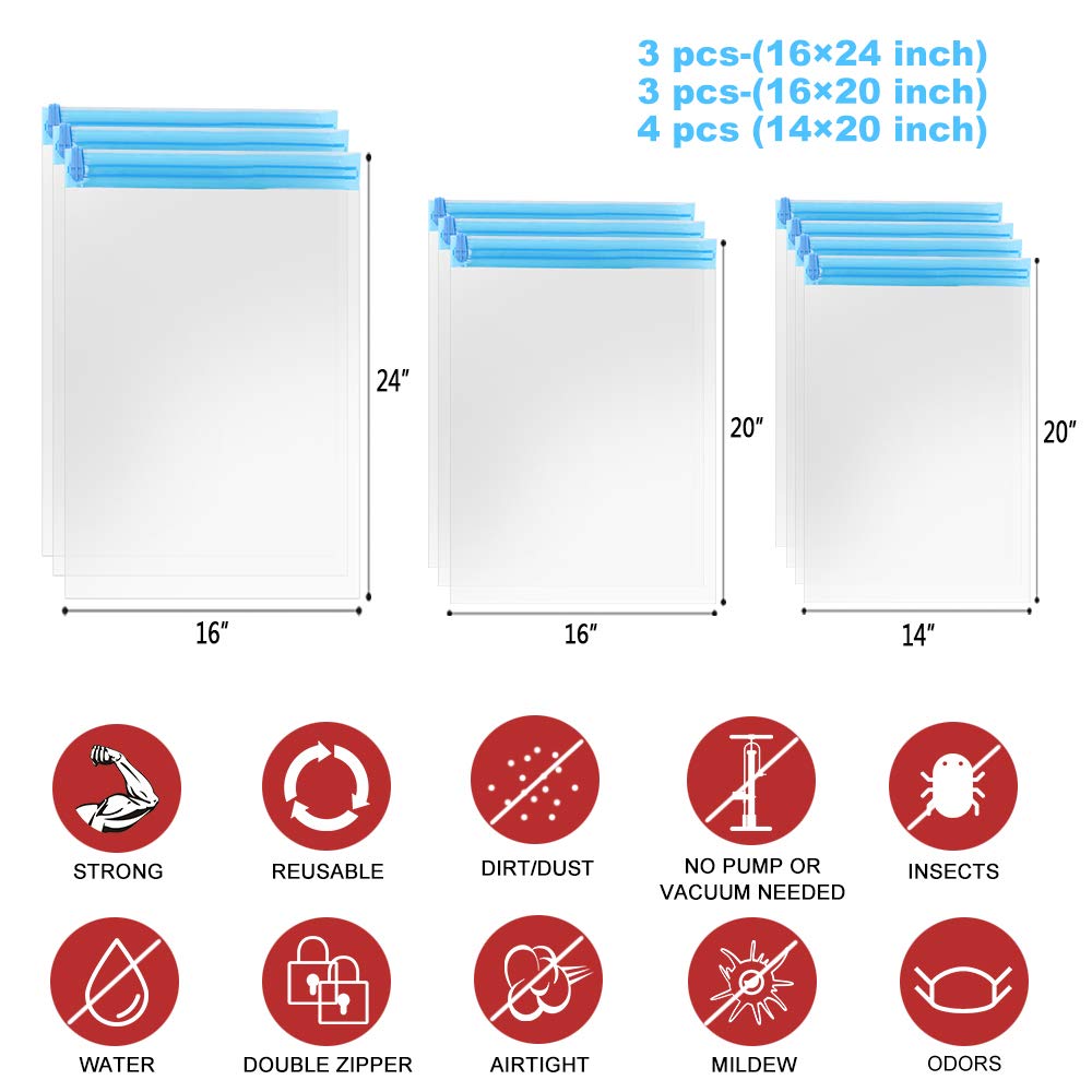Compression Bags - Travel Accessories - 10 Pack Space Saver Bags - No Vacuum or Pump Needed - Vacuum Storage Bags for Travel Ess