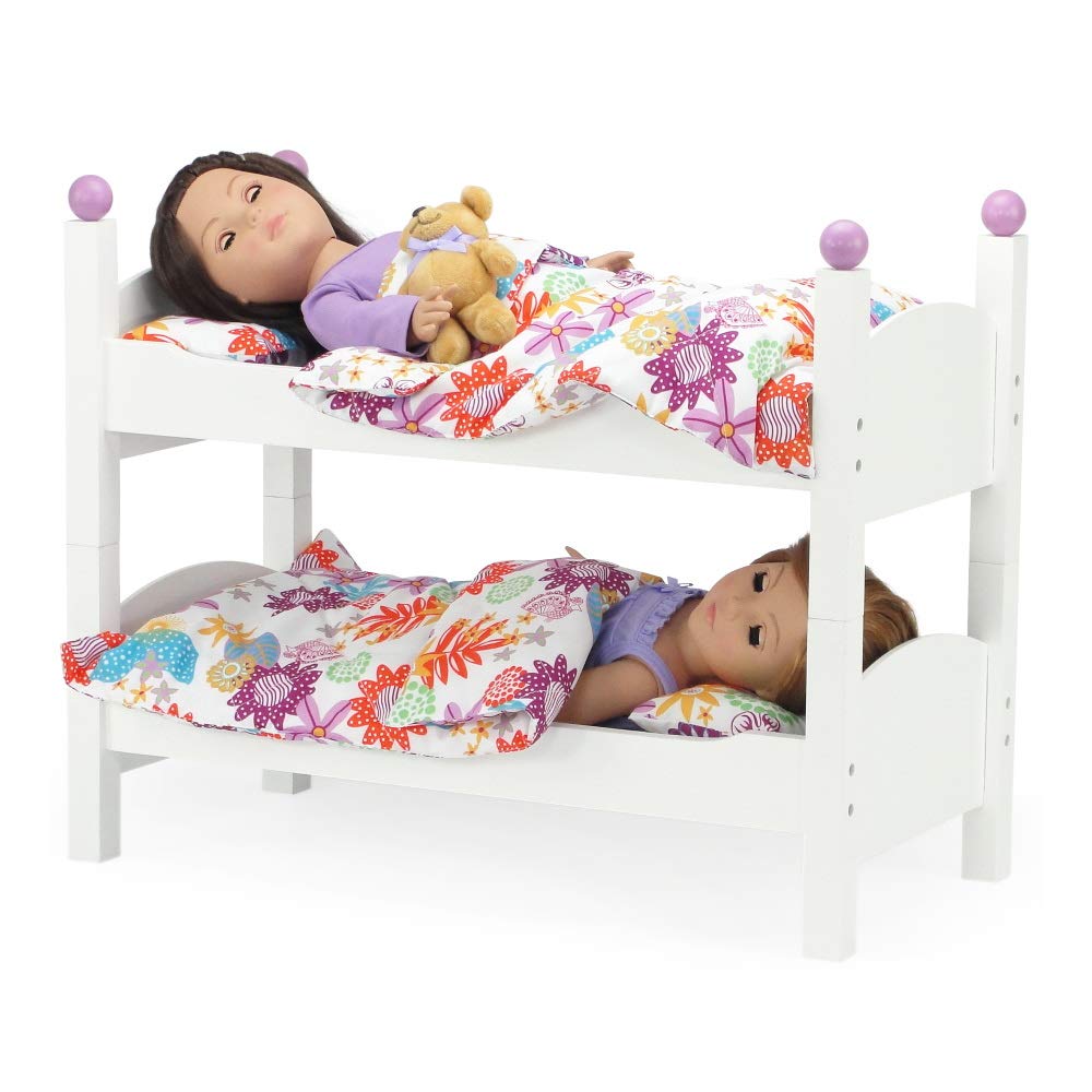 Emily Rose Doll Bunk Bed, 18 Inch Doll Bedroom Furniture 2 Stackable Beds, Wooden 18-in Doll Accessories Bunkbed Set with 18 D