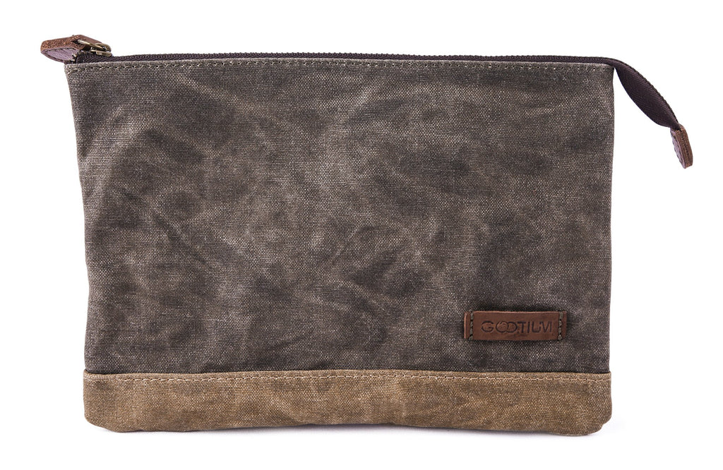 Features: Water-Resistant Performance Helps Protect Your Belongings One Compartment Design Allow Easy Access To Necessities Considerate Puller Offer Easy Way To Zip / Unzip High Quality Metal Zipper On The Top Contrast Color Pattern Make It Unique &Nbsp;&Nbsp;&Nbsp;Product Details: Materials: 16 Oz Waxed Canvas & Genuine Leather Trim Dimension: Length 9.25 , Width 0.2 , Height: 6.5Approximately Gootium Branding To Front Pack Of 2 Pouches For 1 Price &Nbsp;&Nbsp;&Nbsp;Kindly Reminder: Thanks For Your Attention To Gootium, Should You Have Any Inquires Or Need Any Assistance, Please Do Not Hesitate To Contact Us.