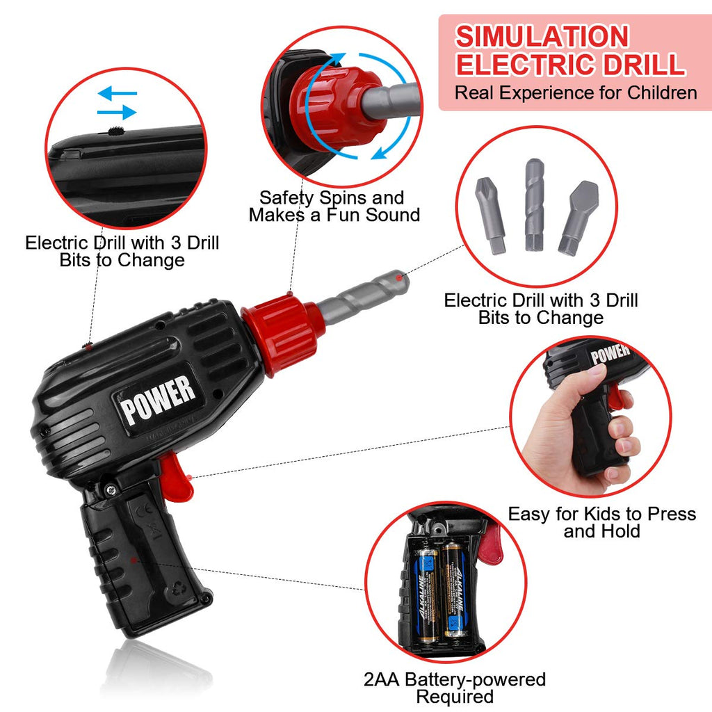 Little Builders Get Busy with a LOYO Tool Set Designed just for Them! What Makes LOYO Toy Drill Engineering Building Blocks So Special? Realistic drilling action & sounds! Drill turn right or left with one button. Easy and safe for kids to operate. realistic-looking and functional. 4 wood pieces with 6 screw and nuts give kids a project to complete. kids tool belt and tool box durable stitching offers a long time use age. Supports STEM Learning with Early Engineering Play. Builds construction and fine motor skills. Advances hand-eye coordination, matching, patterning. Advances problem-solving skills. For Little kid Learning Fine Motor Skills.