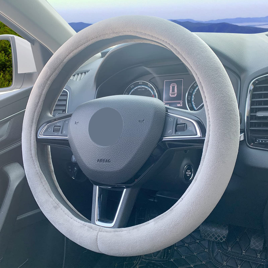 Ranxizy Fluffy Steering Wheel Cover, Short Plush Auto Accessories For Men And Women With Inner Ring Universal 15 Inch (Grey)