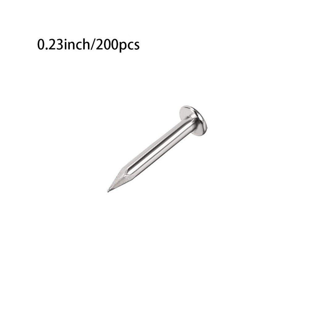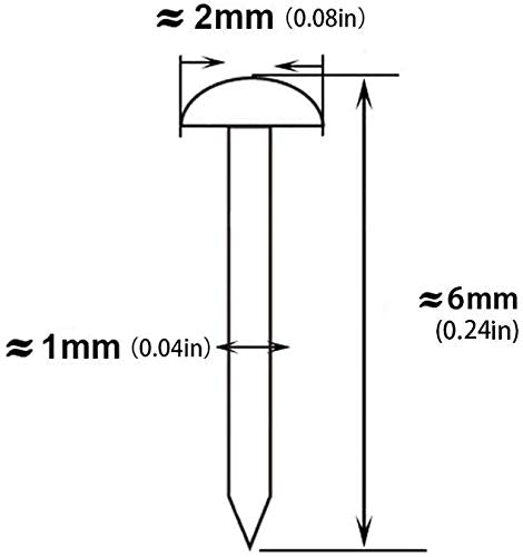 Vintage Upholstery Nail:Wide application: Round head nails can be using for wall hanging picture frames, art works, kids paintings, canvas, office pictures, museum pictures, gallery pictures, drywall art painting, art display, clock, posters hanging, etc. Antique design: ?Flat-round head??Sharp point??Antique color??Antique DIY nail is Ideal for your woodworking projects, and make your decorating or repairing projects perfectly. Advantage: When removed the picture hooks, nails leave only a pinhole in wall and will not damage your walls, great for professional, hobby, and home use. Used by museum and galleries worldwide. Specification: -Material: Iron -Finish: Nickel plated -Color: Silver-Size:[VERY SMALL]-?Nails length: appr. 6mm/0.23 inch-?Head diameter: appr. 2mm/0.08inch-?Shank diameter: appr. 1mm/0.04inch ??(Light shooting or different displays may cause the color of the item in the picture a little different from the real thing.)??(Please allow 1-2mm error due to manual measurement. Thanks for your kindly understanding.) You will get: 200 x tiny nails Warm Tips: 1.Keep it in a dry place.2.Please keep them far away from kids.?? 3. Put on the gloves in case of dirty fingers.4.The nails are too small to handle with bare hands!??
