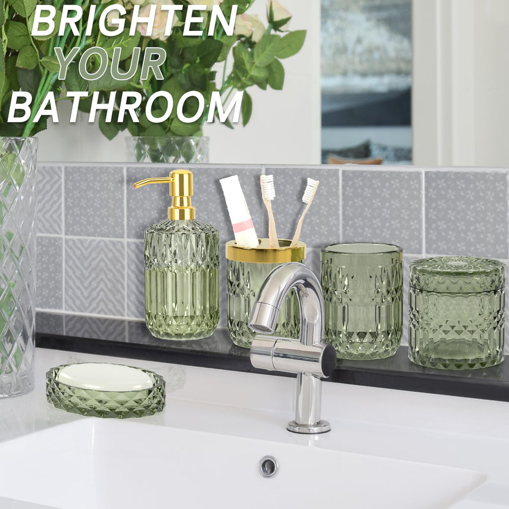 Towoaafu Green Bathroom Accessories Set - 5 PCS Glass Bathroom Decor with Soap Dispenser & Soap Dish & Toothbrush Holder & Tumbl