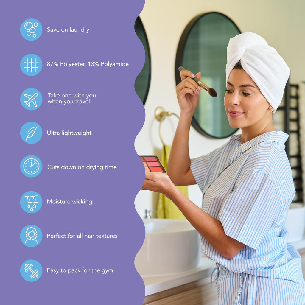 Place, Twist, Loop and gift Your favorite Super Absorbent Hair Towel is now available as an affordable 2-Pack right here The Original Turbie Twist As Seen On TV Everyone knows itAs the unique twist and loop system combined with the perfect tapered design that makes Turbie Twist the ultimate Aput on and stay onA hair towel ItAs the perfect fit on all sized heads, and all lengths of hair There are no fiddly buttons to deal with And each hair turban towel has a roomy pocket to fit all length of hair From waist length or curly, short hair to kids - itAs as easy as 1-2-3: Place, Twist, and Loop Super light, Yet super-absorbent (yay less blow drying) DonAt be confused by itAs super light weight because The original Turbie Twist is a super-absorbent micro fiber hair towel designed to soak up more moisture and reduce your blow dry time So now you can get dressed, apply make-up, check email, or just lounge around knowing your hair is drying without you lifting a finger Value packed 2-Pack, now available right here WeAre proud to offer you the best price Turbie Twist youAve found on your search today Use them all yourself, or gift one to a friend who is still crushing under the weight of a bulky bath towel