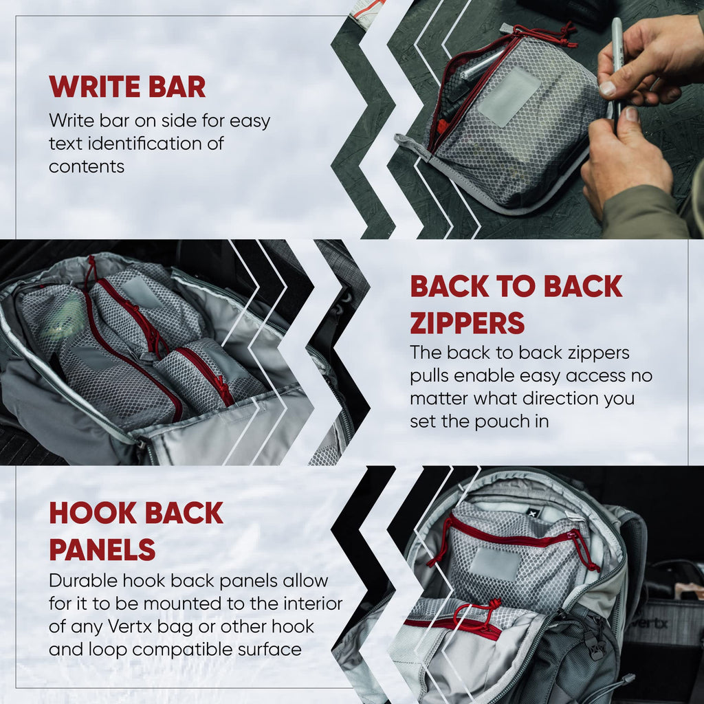 Vertx Overflow Pouches, Mesh Zipper Pouch for Tactical Gear, Backpack Accessories, Storage of Cables, Tool Kits, EDC Survival Bu