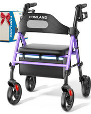 DURABILITY MEETS DESIGN: Our 4 wheel rollator is engineered with a reinforced frame and double support bars, supporting up to 350 pounds. With thickened tubing and robust wall construction, it guarantees durability and stability for every step. | IMPROVED COMFORT: Adjustable seat and handle heights accommodate users from 47 to 66. Enjoy a breathable backrest and an extra-wide memory foam seat that prioritizes comfort and safety, making every outing a pleasure. | COMPREHENSIVE SAFETY: 1. Reliable Braking System, features three modes (free, deceleration, stop) for ultimate control. 2. Pinch-Proof Folding Point Design, fully enclosed folding points prevent pinching. 3. Ergonomic Hand Grips, soft grips reduce hand fatigue, allowing easy use by individuals with limited strength. 4. Multi-Reflective Strips, enhance visibility during nighttime use. | EFFORTLESS MOBILITY: Glide over any terrain with our 8-inch puncture-proof wheels, expertly crafted for smooth movement indoors and out. Whether strolling through the park or navigating your home, this rollator makes mobility easy and enjoyable. | FOLDABLE & CONVENIENT: At just 20.4 pounds, this 4 wheel walker combines strength with portability. Its quick-fold design allows for easy transport and storage, fitting perfectly into your lifestyle. | US-BASED SUPPORT: HOMLAND offers a lifetime warranty on the metal frame and a 1-year warranty (with a 1-year extension) on non-metal parts. Enjoy peace of mind with access to our user manual, installation videos, and US-BASED customer support whenever you need it.