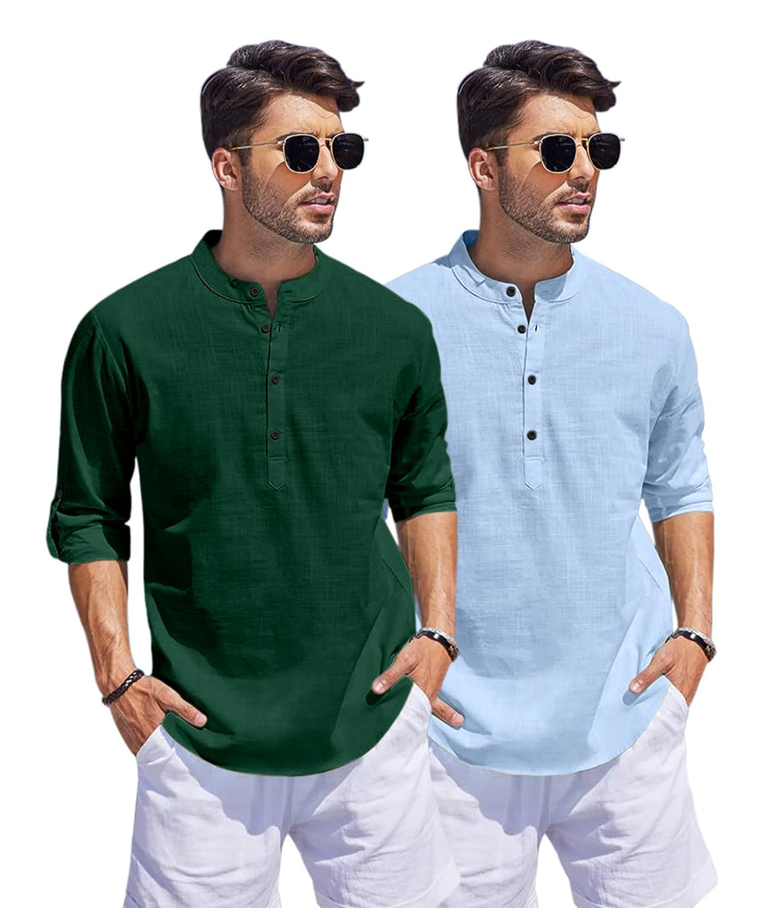 Bellstone Men'S Cotton Blend Solid Regular Dress Shirt (Kurta1500_Combo_D Green & Sky_Xl_Dark
