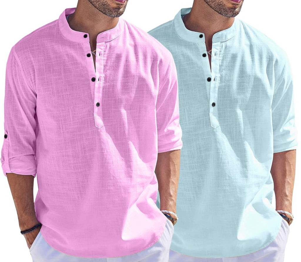 Bellstone Men'S Cotton Blend Solid Regular Dress Shirt (Kurta1500_Combo_L Pink & Aqua_Xl_Light