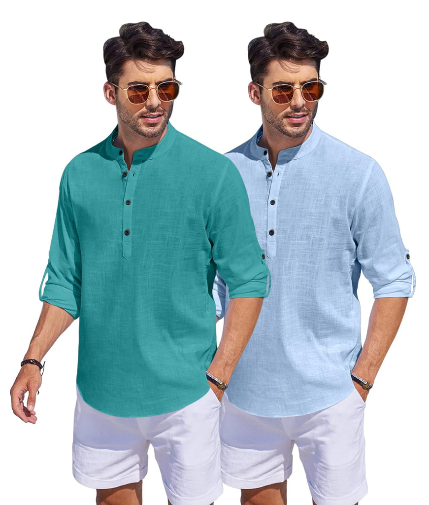 Bellstone Men'S Cotton Blend Solid Regular Dress Shirt (Kurta1500_Combo_Rama & Sky_S