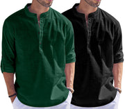 Bellstone Men'S Cotton Blend Solid Regular Fit Dress Shirt (Kurta1500_Combo_D Green & Black_S_Dark