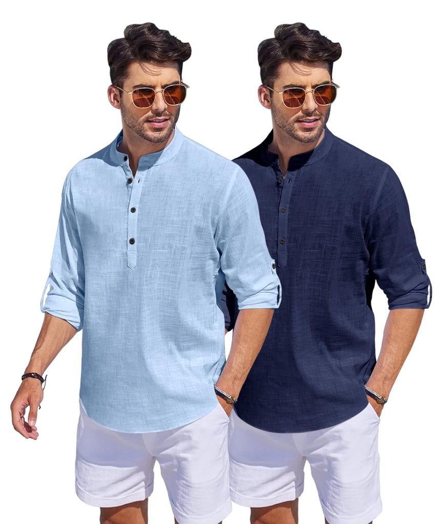 Bellstone Men'S Cotton Blend Solid Regular Fit Dress Shirt (Kurta1500_Combo_Sky & Navy_S