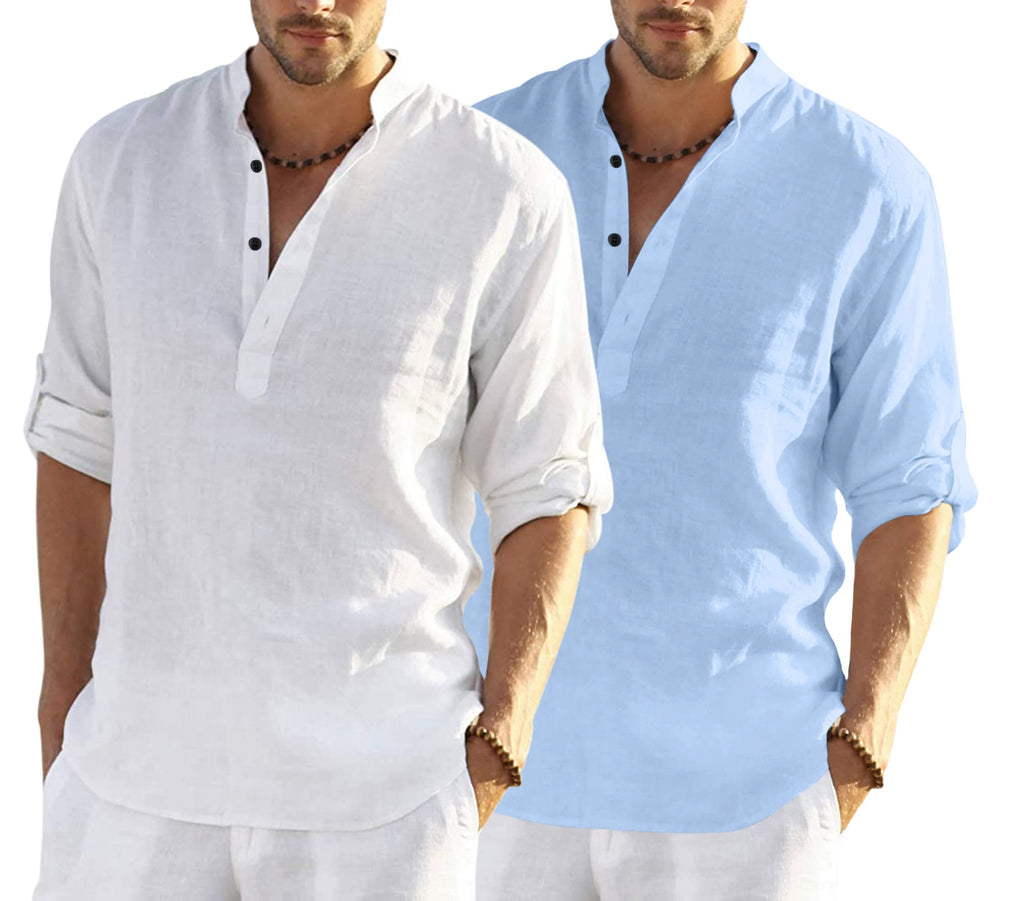 Bellstone Men'S Solid Regular Fit Dress Shirt (Kurta800Combo_White_Skyblue_S Sky Blue
