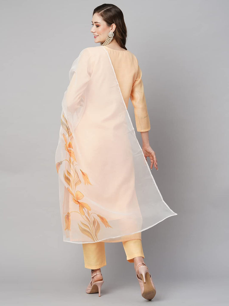 Gosriki Women'S Chanderi Cotton Straight Printed Kurta With Pant & Dupatta (Falak Cream-Nw-Gs_3Xl_Cream_Xxx-Large),Cream,3,B0C718GWMY
