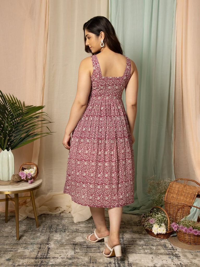Gosriki Women'S Cotton Blend A-Line Printed Dress (Vk11 Red-Nw-Gs_Xxl_Red_Xx-Large)