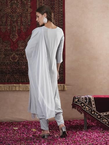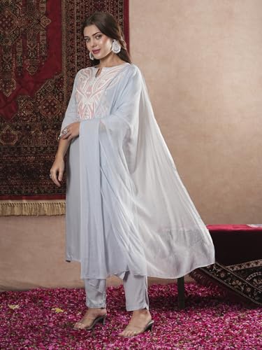 Gosriki Women'S Cotton Blend Embroidered Straight Kurta With Pant & Dupatta (Gudali Blue-Vks07-Gs_S_Blue_Small),Blue,,B0DM1VYSWP