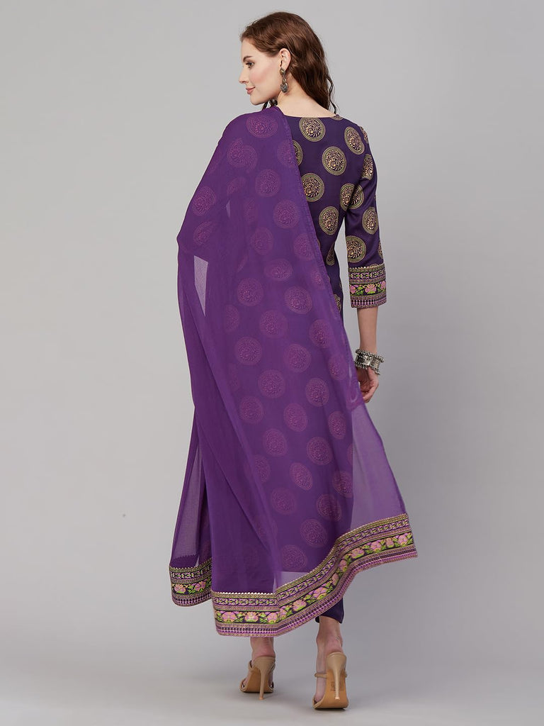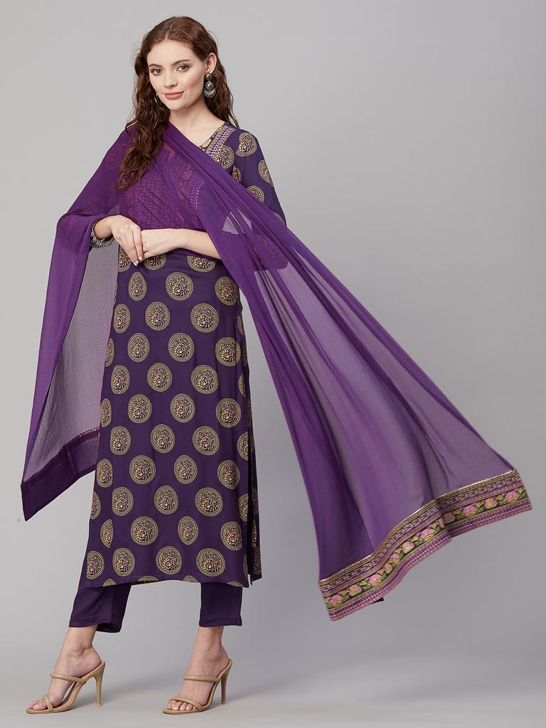 Gosriki Women'S Cotton Blend Printed Straight Kurta With Pant & Dupatta (Nov-Violet-Gs_M_Violet_Medium),Violet,,B0C9TXHYT8