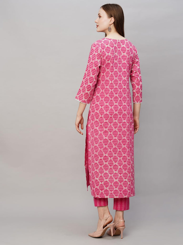 Gosriki Women'S Cotton Blend Printed Straight Kurta With Pant (Vanar-Pink-Gs_S_Pink_Small)