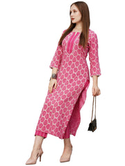 Gosriki Women'S Cotton Blend Printed Straight Kurta With Pant (Vanar-Pink-Gs_Xl_Pink_X-Large),Pink,,B0CD7V2VLN