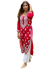 Gosriki Women'S Cotton Blend Straight Chikankari Embroidered Kurta (River Red-Gs_3Xl_Red_Xxx-Large)