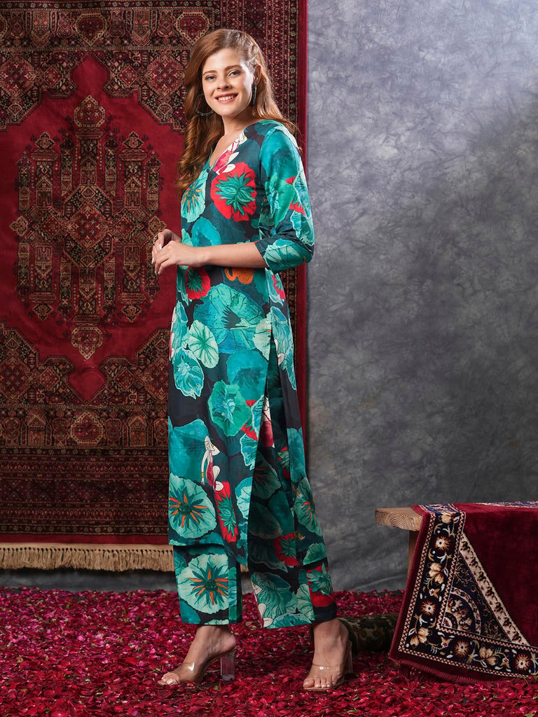 Gosriki Women'S Cotton Blend Straight Printed Kurta With Palazzo (Reena Green-Gs_Xxl_Green_Xx-Large),Green,2,B0D9WDZJB2