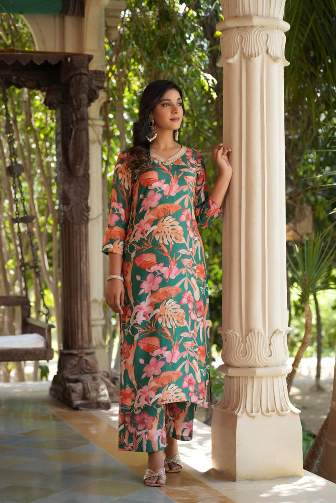 Gosriki Women'S Cotton Blend Straight Printed Kurta With Pant (Chinki-Green-Sh-Gs_Xxl_Green_Xx-Large),Green,2,B0D4VHZQGC