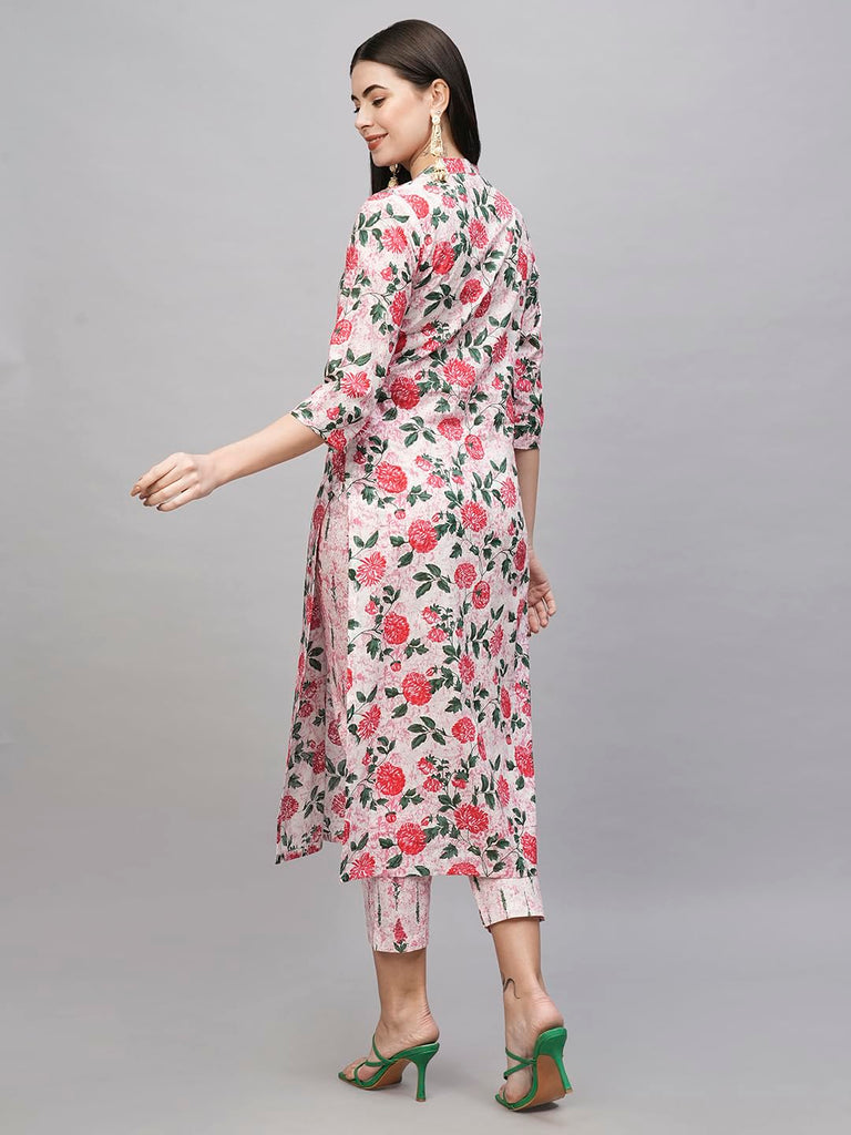 Gosriki Women'S Cotton Blend Straight Printed Kurta With Pant (Dafiya Peach-Gs_4Xl_Peach_Xxxx-Large)