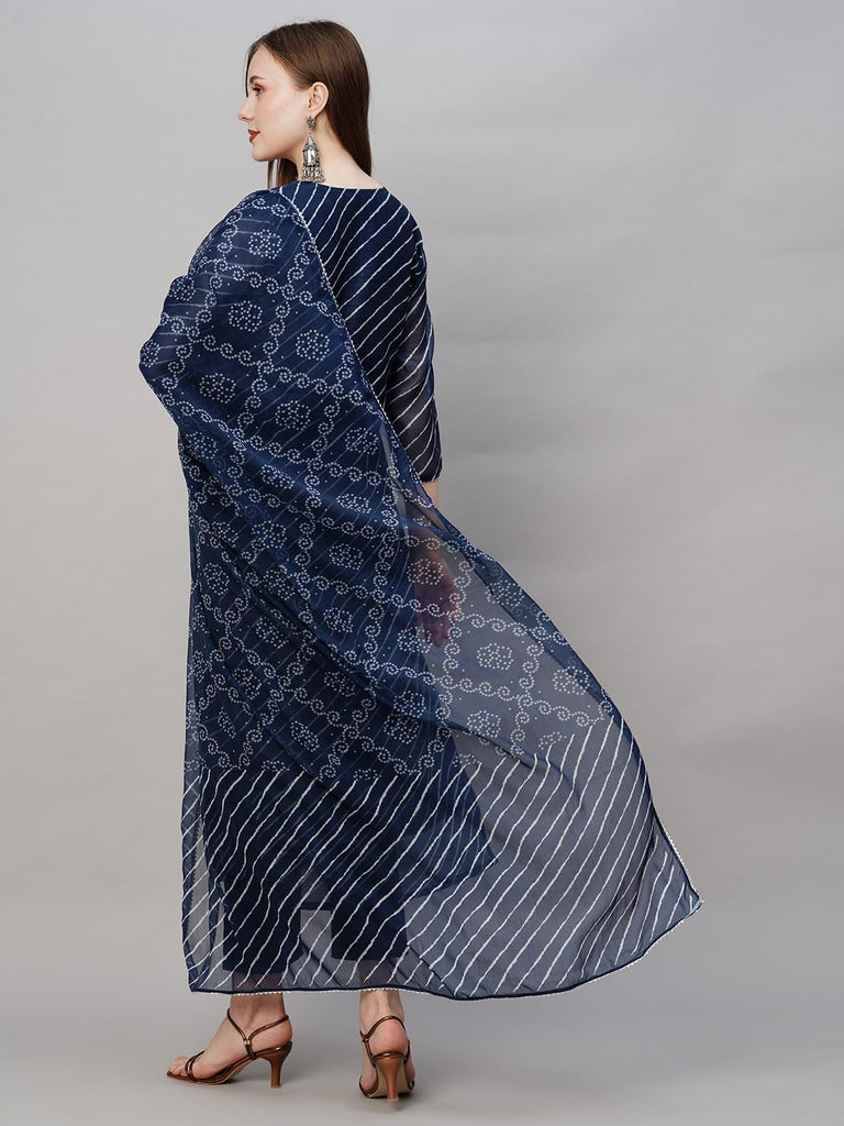 Gosriki Women'S Cotton Blend Straight Printed Kurta With Pant & Dupatta (Doremi Navy-Nw-Gs_Xxl_Navy Blue_Xx-Large)
