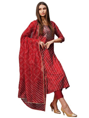 Gosriki Women'S Cotton Blend Straight Printed Kurta With Pant & Dupatta (Doremi-Pink-Kbv-Gs_Xl_Pink_X-Large)