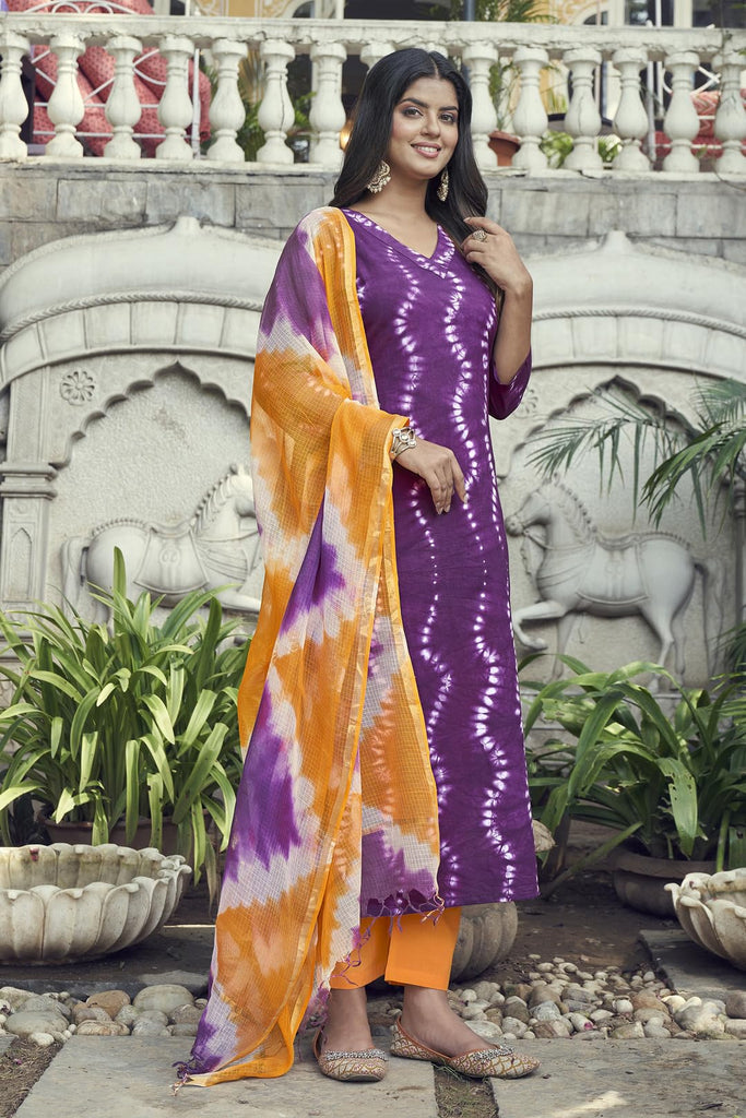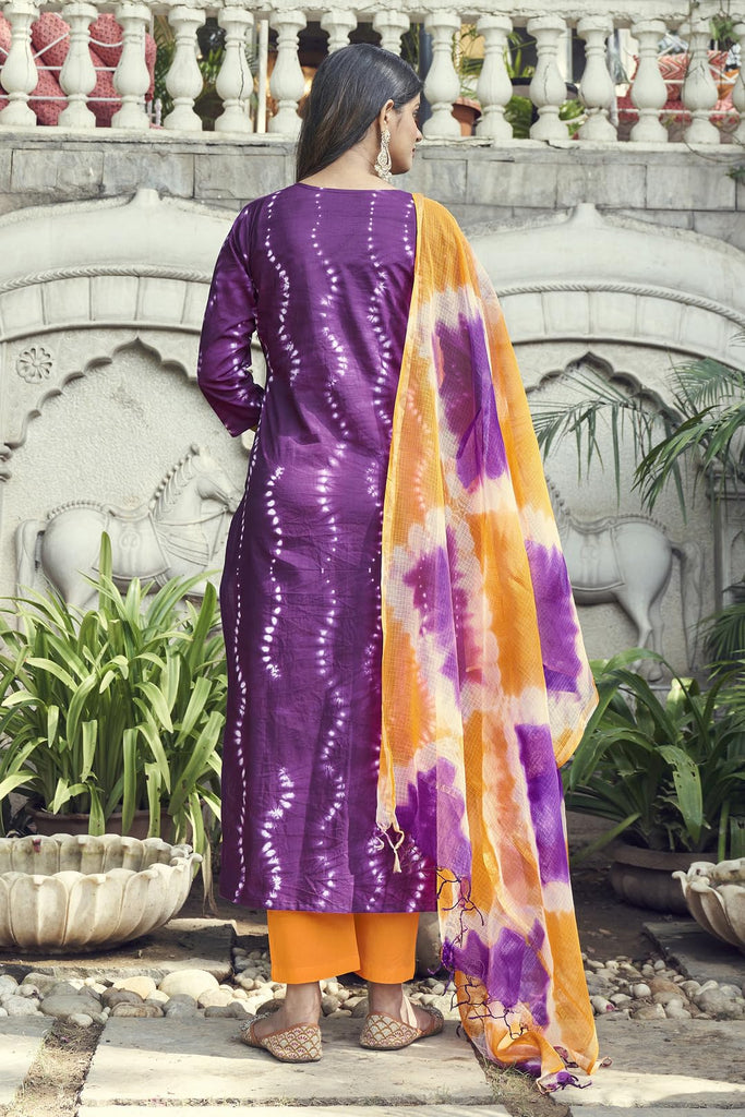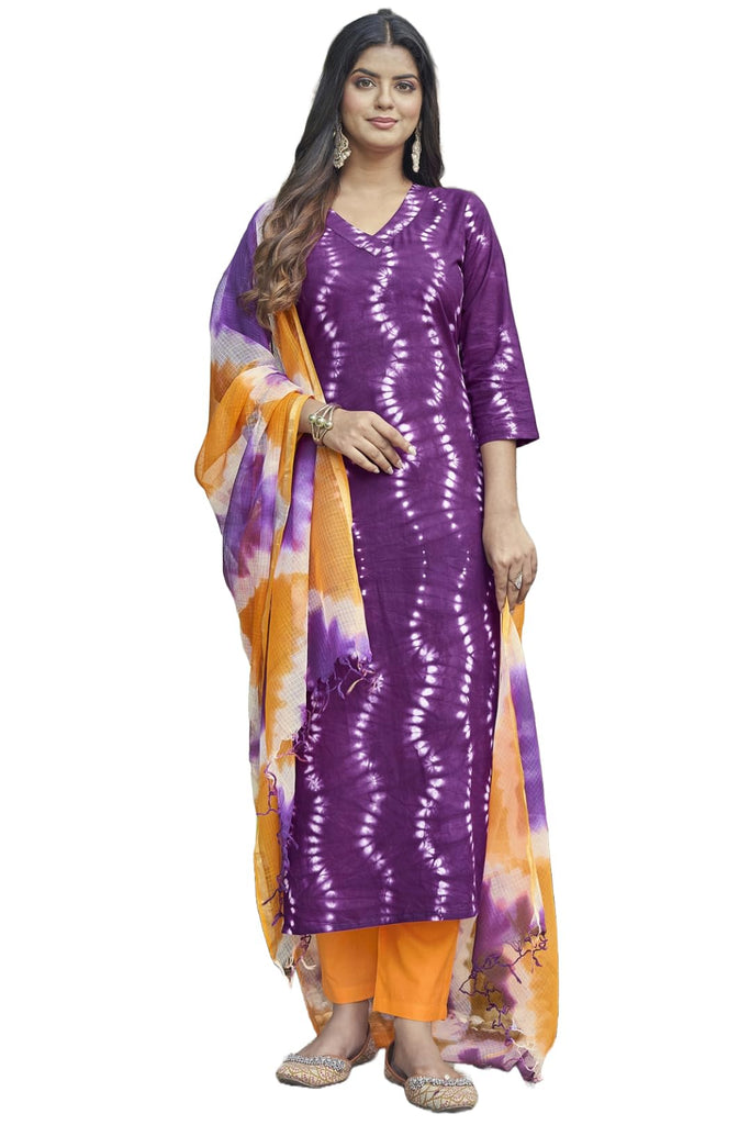 Gosriki Women'S Cotton Blend Straight Printed Kurta With Pant & Dupatta (Mukhi Pink-Fnw-Gs_L_Pink_Large)