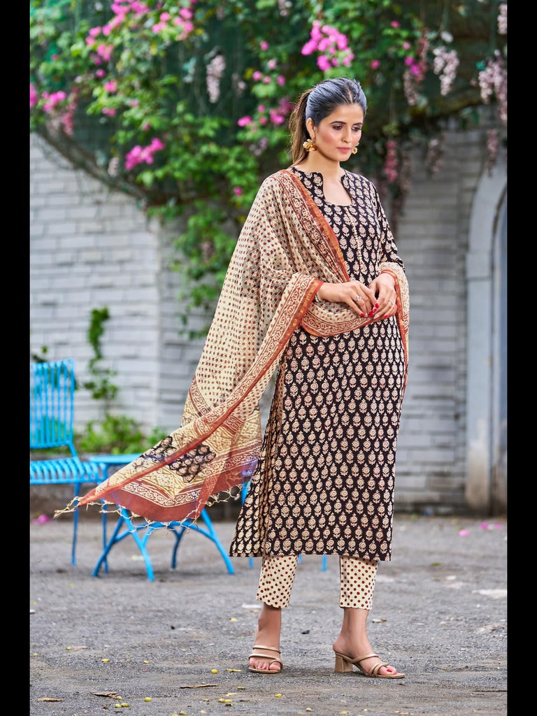 Gosriki Women'S Cotton Blend Straight Printed Kurta With Pant & Dupatta (Nayantara Black-Nrw-Gs_Xxl_Black_Xx-Large),Black,2,B0CCL4FGLC