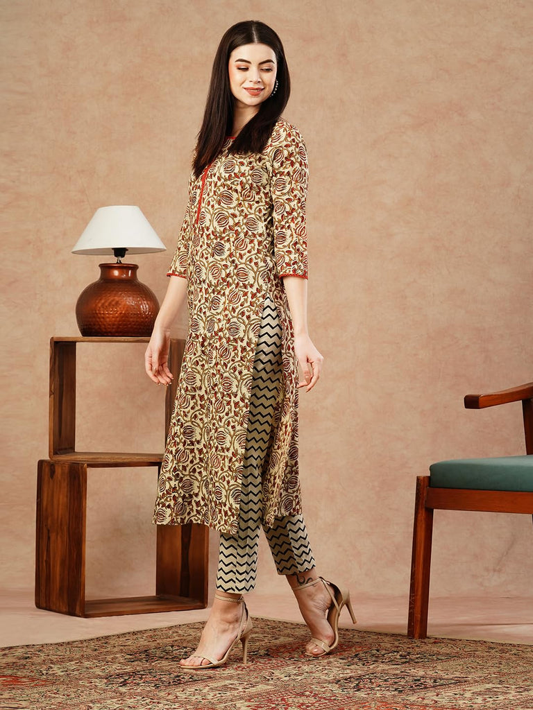 Gosriki Women'S Cotton Blend Straight Printed Kurta With Pant