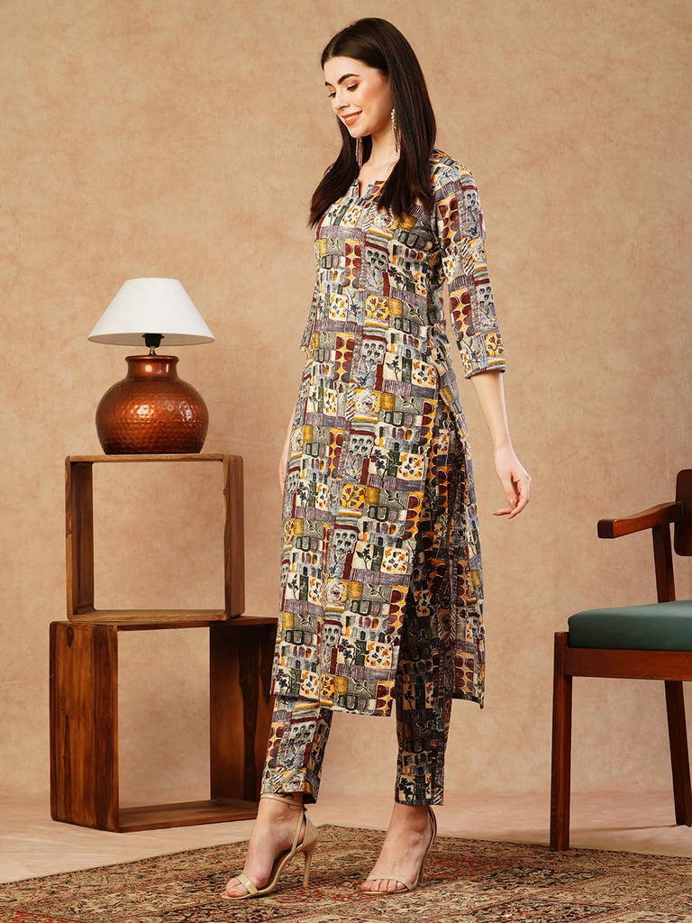 Gosriki Women'S Cotton Blend Straight Printed Kurta With Pant (Ing 10 Green-Gs_4Xl_Green_Xxxx-Large)