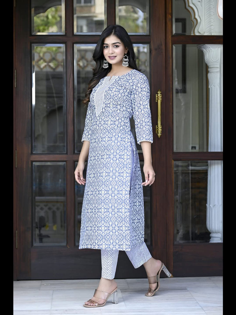 Gosriki Women'S Cotton Blend Straight Printed Kurta With Pant (Kavi Grey-Cmd-Gs_5Xl_Grey_Xxxxx-Large)