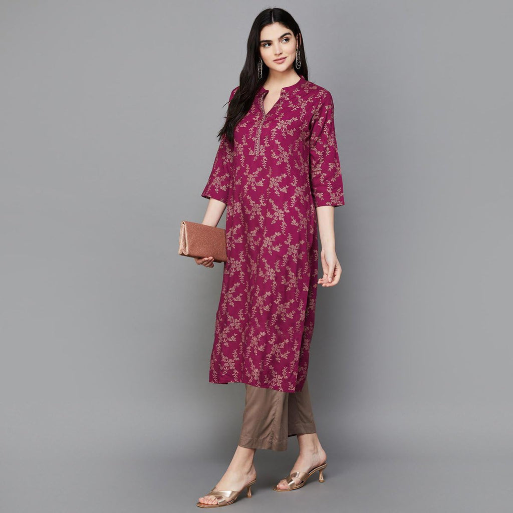 Gosriki Women'S Cotton Blend Straight Printed Kurta With Pant (Loribi Wine-Gs_Xxl_Wine_Xx-Large),Wine,2,B0D83QPZF3