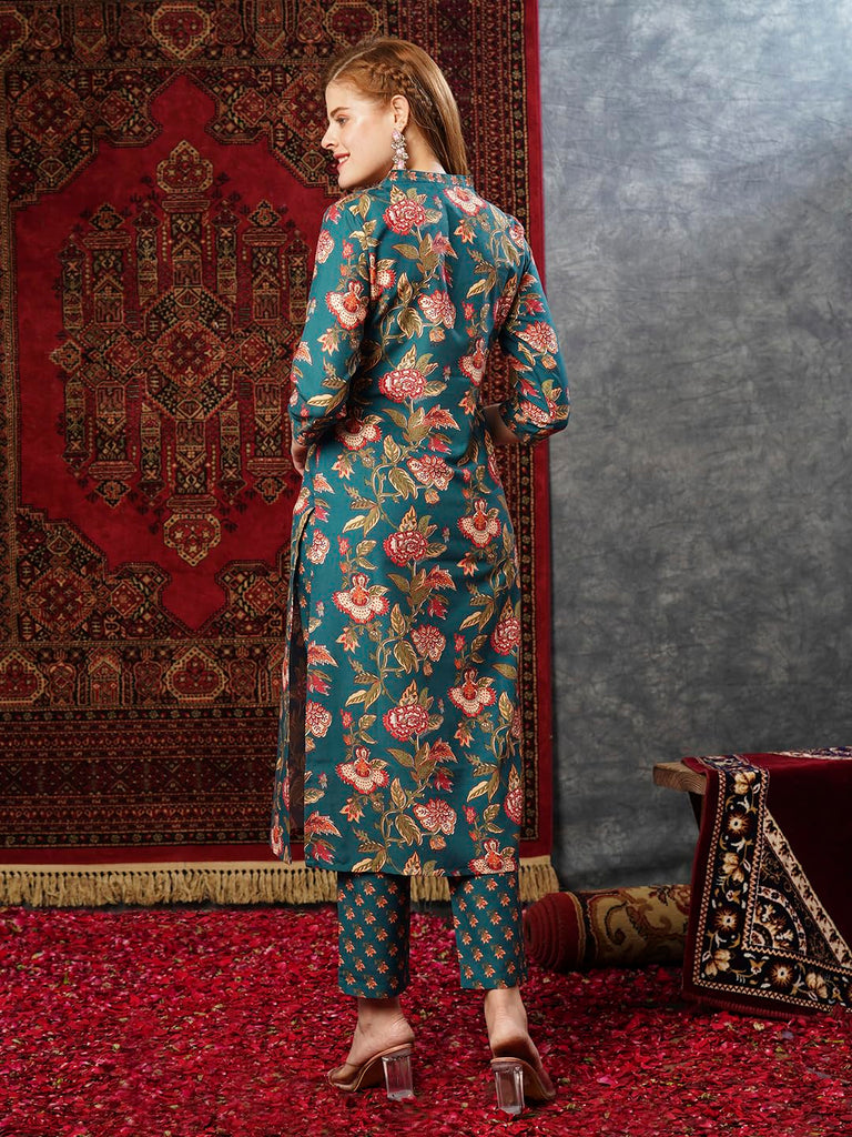 Gosriki Women'S Cotton Blend Straight Printed Kurta With Pant (Paresh Rama-Gs_Xl_Green_X-Large),Rama Green,,B0D73XW1WC