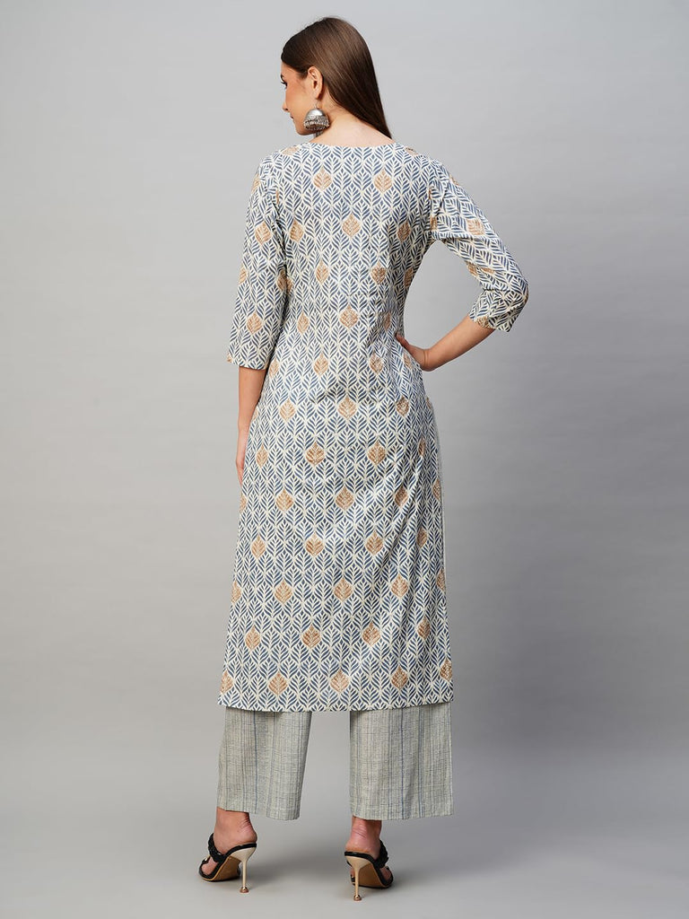 Gosriki Women'S Cotton Blend Straight Printed Kurta With Pant (Pat 11 Blue-Gs_S_Blue_Small),Blue,,B0CM9JRHGY