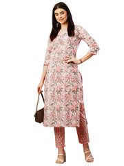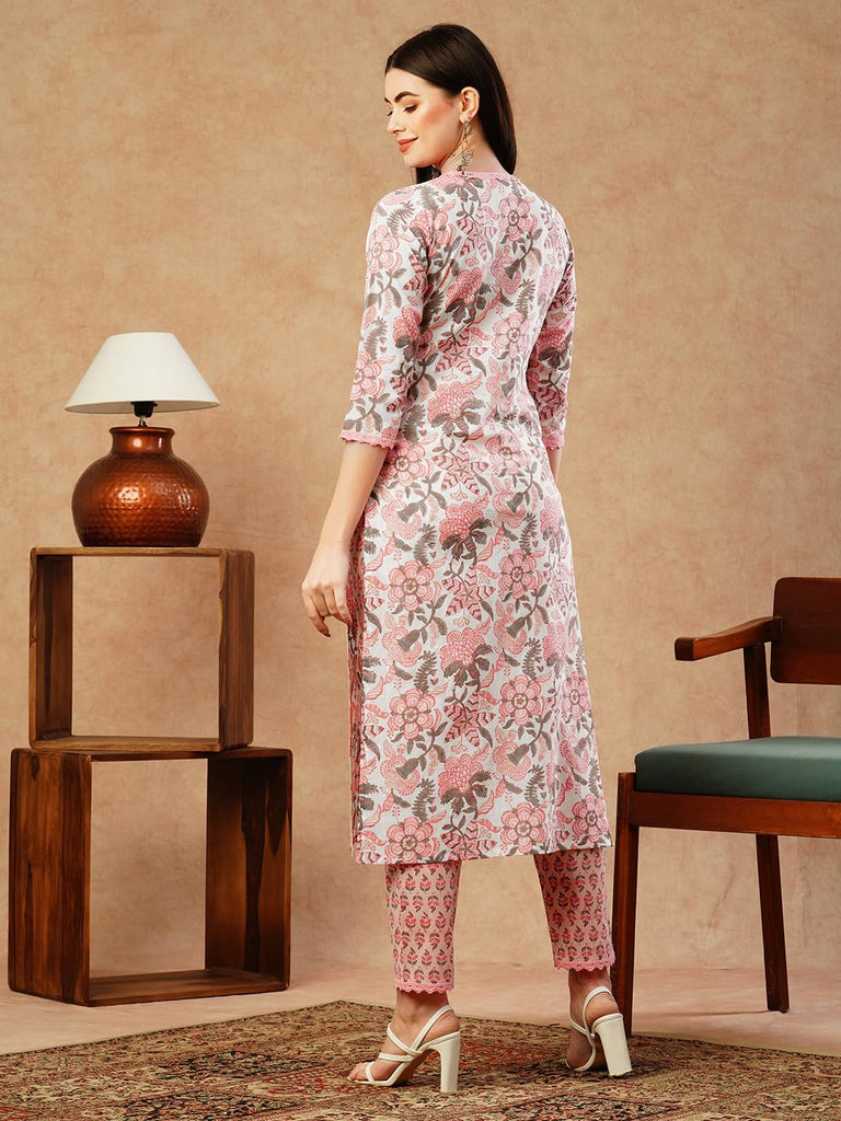 Gosriki Women'S Cotton Blend Straight Printed Kurta With Pant (Pdk26 White-Gs_Xxl_White_Xx-Large)