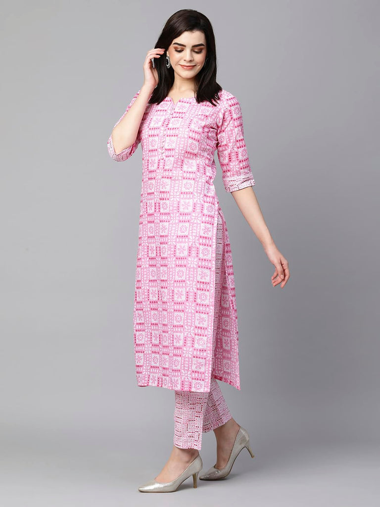 Gosriki Women'S Cotton Blend Straight Printed Kurta With Pant Set (G20 Pink-Nw-Gs_5Xl_Pink_Xxxxx-Large)