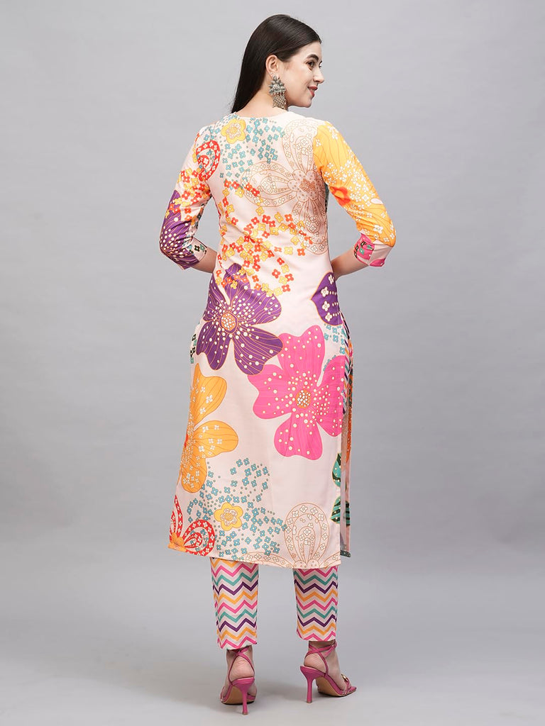 Gosriki Women'S Cotton Blend Straight Printed Kurta With Pant (Wahida White-Gs_L_White_Large),White,,B0CSG773XP