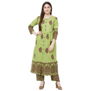 Gosriki Women'S Green Color Cotton Block Printed Kurta With Palazzo Pant Set(Lagan-Green-L).