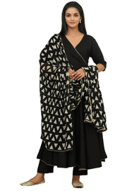Gosriki Women'S Rayon Blend Anarkali Solid Kurta With Pant & Dupatta (Mita Black-Gs_Xl_Grey_X-Large),Black,,B0DFY1GLQX