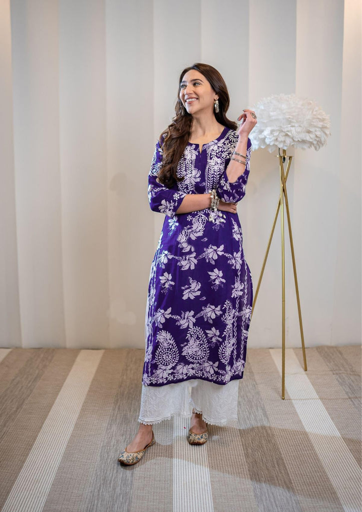 Gosriki Women'S Rayon Blend Chikankari Embroidered Straight Kurta (Sceros Violet-Nw-Gs_Xl_Violet_X-Large),Violet,,B0D4ZGR2KN