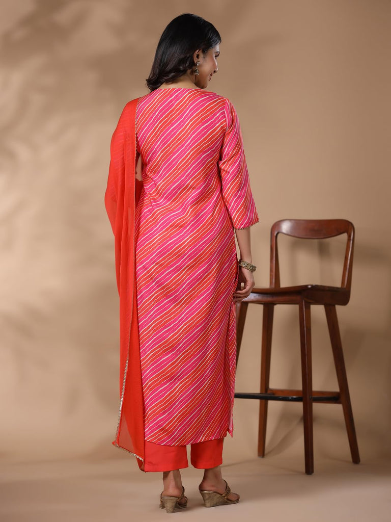 Gosriki Women'S Rayon Blend Embroidered Straight Kurta With Pant & Dupatta (Nini-Multi-Nsw-Gs_M_Multi_Medium)